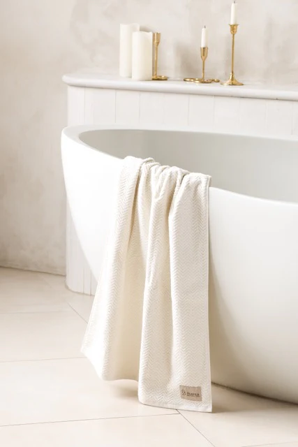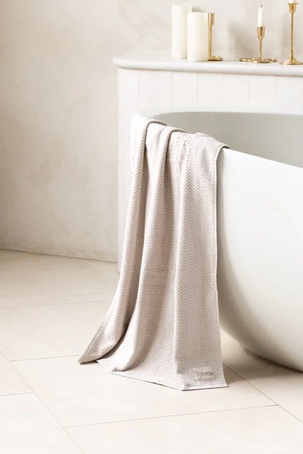 Made from sustainably sourced 100% cotton, these bath sheets are designed to be soft, absorbent, and quick-drying, making them ideal for daily use. With a classic herringbone pattern and a plush 600gsm weight, these towels offer the perfect balance of comfort and durability. Available in three versatile colors, they’re a dependable addition to any bathroom.