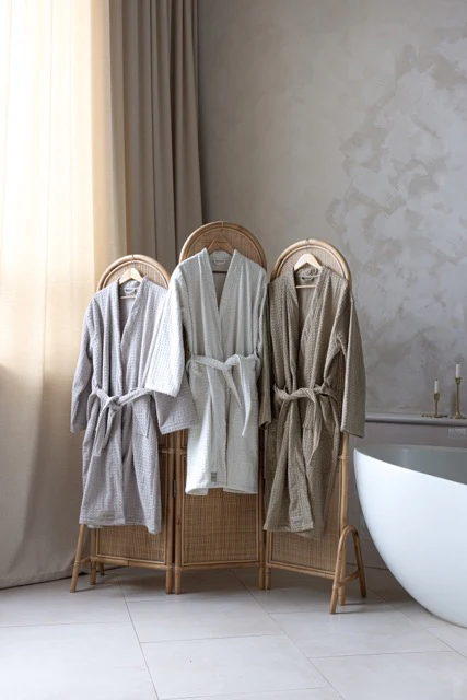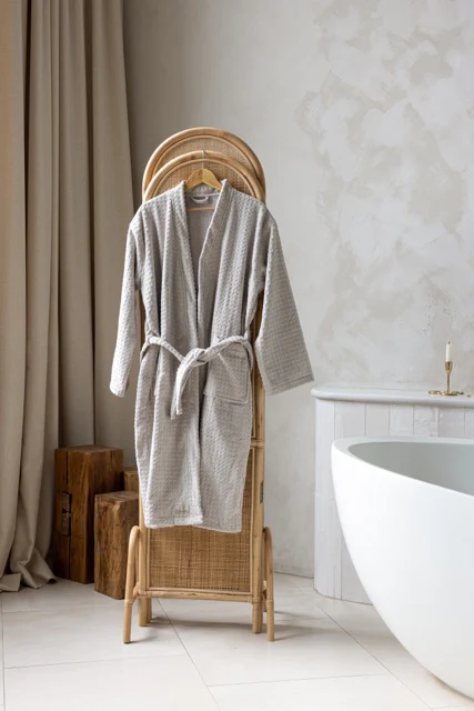 Wrap yourself in comfort with our ultra-soft bathrobe, crafted from 100% sustainably sourced cotton. Designed for ultimate relaxation, this bathrobe offers a plush feel and perfect warmth, making it an ideal addition to your post-bath or spa routine. Available in three timeless colors, it combines style, practicality, and comfort for everyday luxury.