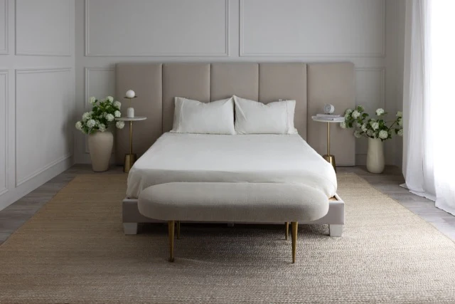 Our bedding collection is available in two sizes — Queen and King — offering both sheet sets and reversible duvet sets.